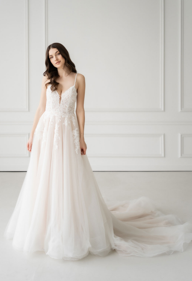 SCARLET eignet sich besonders für Bräute, die ein ausdrucksstarkes Brautkleid suchen, das romantisch wirkt, aber klar und modern bleibt.