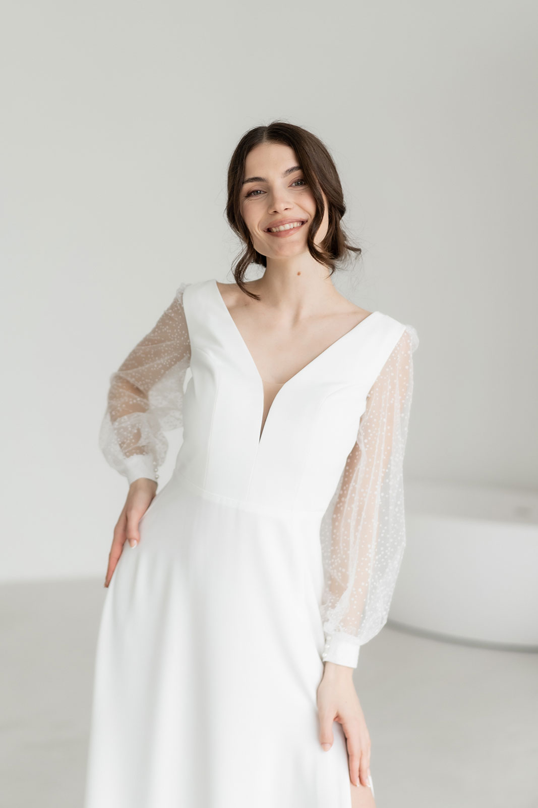 SHARON ist ideal für Bräute, die ein Kleid suchen, das leicht wirkt, sich gut trägt und dennoch besondere Akzente setzt – perfekt für freie Trauungen, Sommerhochzeiten oder moderne Hochzeitskonzepte.